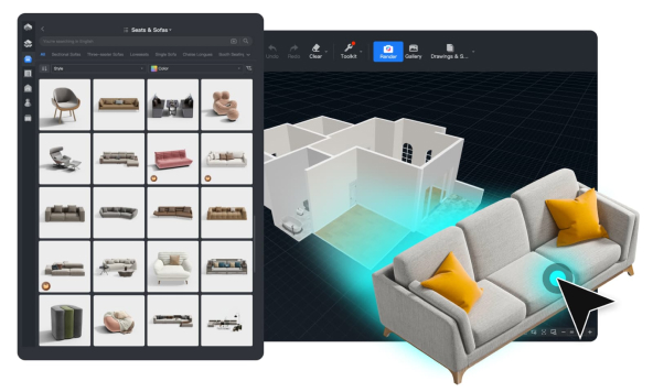 Odkryj ponad milion modeli 3D w bibliotekach Coohom. Znajdziesz tu szeroki wybór mebli, sprzętu AGD i innych elementów do projektowania wnętrz.