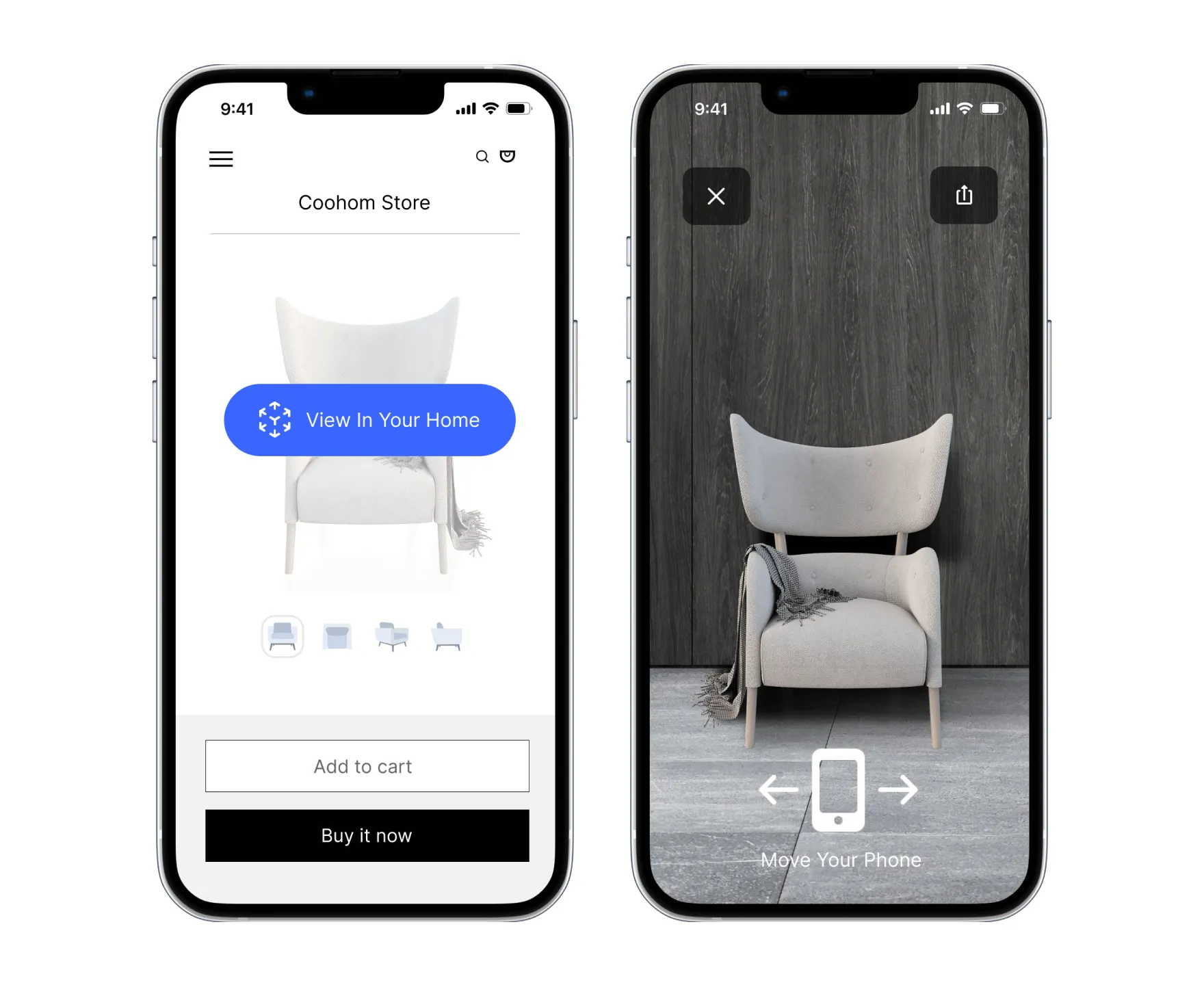 - pozwól klientom zobaczyć produkt w ich własnej przestrzeni dzięki technologii AR.